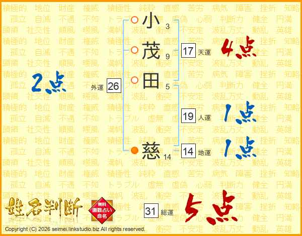 小茂田慈さんの総運は31画の5点!