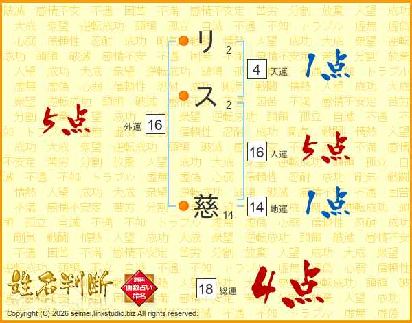 リス慈さんの総運は18画の4点!