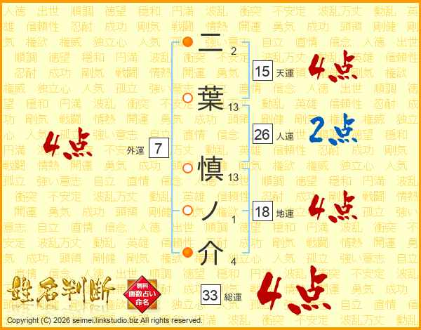 二(2画)葉(13画) 慎(13画)ノ(1画)介(4画)