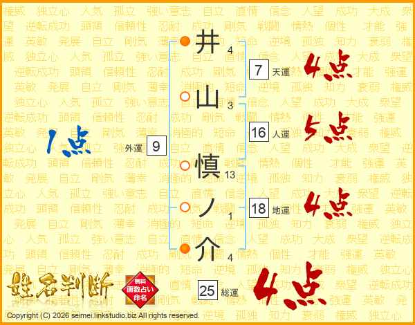 井山慎ノ介さんの総運は25画の4点!
