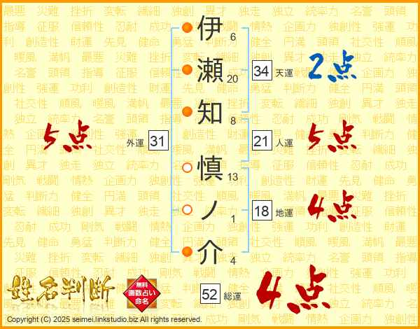 伊瀬知慎ノ介さんの総運は52画の4点!