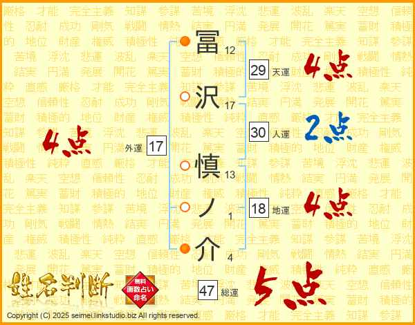 冨沢慎ノ介さんの総運は47画の5点!