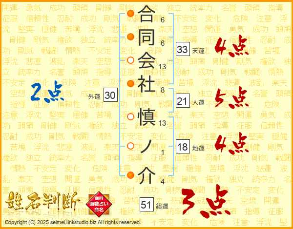 合(6画)同(6画)会(13画)社(8画) 慎(13画)ノ(1画)介(4画)