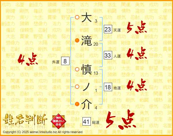 大滝慎ノ介さんの総運は41画の5点!