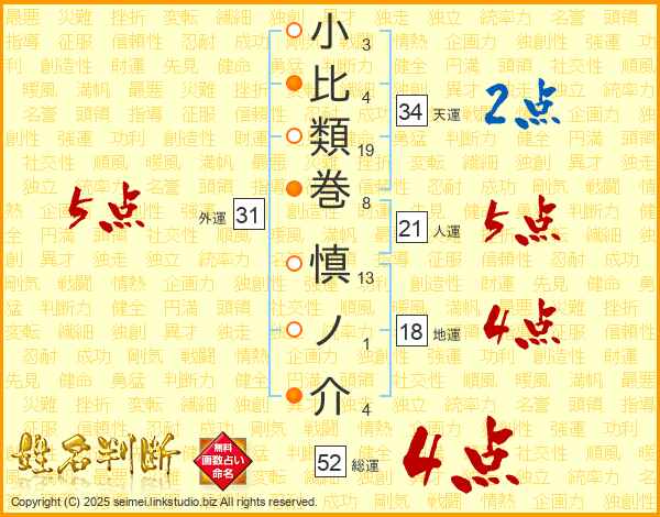 小(3画)比(4画)類(19画)巻(8画) 慎(13画)ノ(1画)介(4画)
