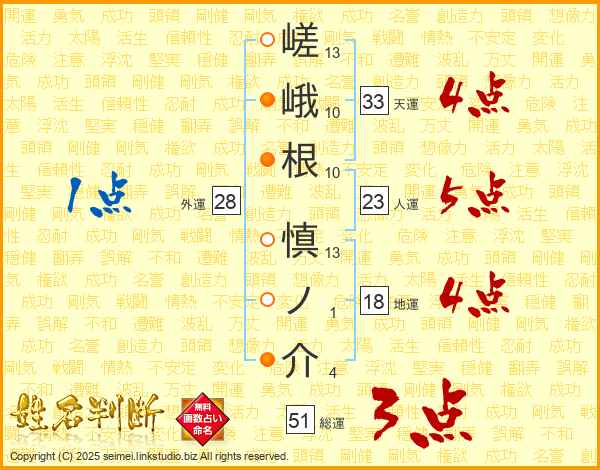 嵯峨根慎ノ介さんの総運は51画の3点!