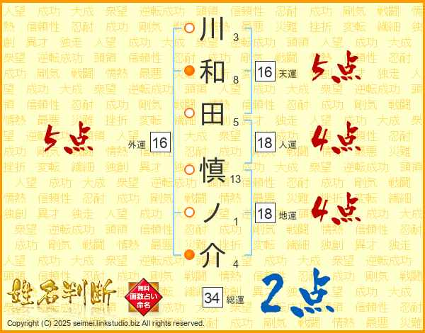 川和田慎ノ介さんの総運は34画の2点!