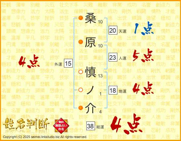 桑(10画)原(10画) 慎(13画)ノ(1画)介(4画)