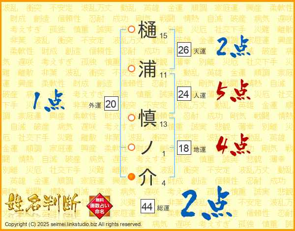 樋浦慎ノ介さんの総運は44画の2点!