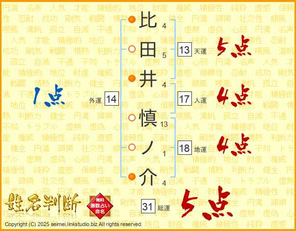 比(4画)田(5画)井(4画) 慎(13画)ノ(1画)介(4画)