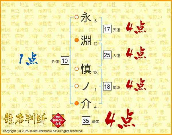 永淵慎ノ介さんの人運は25画の4点!