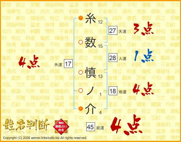 糸数慎ノ介さんの外運は17画の4点!