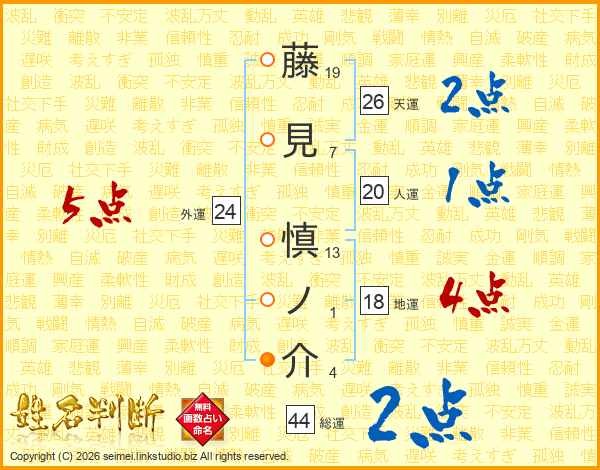 藤見慎ノ介さんの総運は44画の2点!