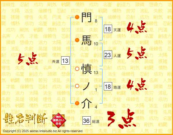 門(8画)馬(10画) 慎(13画)ノ(1画)介(4画)