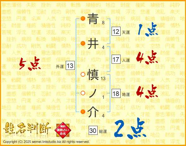 青井慎ノ介さんの総運は30画の2点!