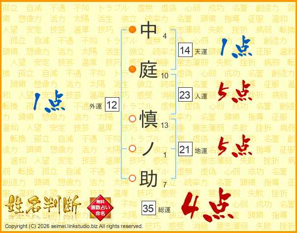 中庭慎ノ助さんの総運は35画の4点!