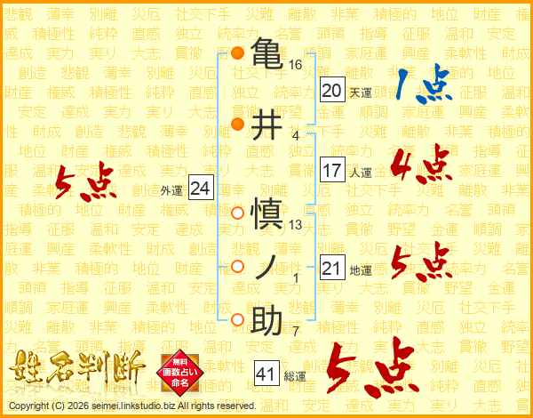 亀井慎ノ助さんの総運は41画の5点!