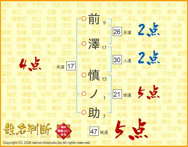 前(9画)澤(17画) 慎(13画)ノ(1画)助(7画)