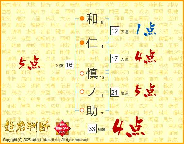 和仁慎ノ助さんの総運は33画の4点!