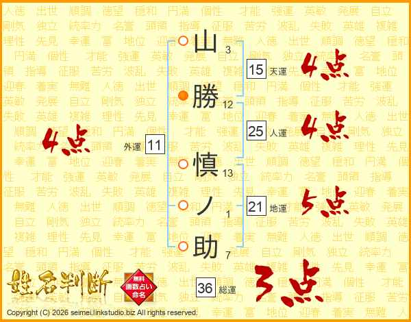 山勝慎ノ助さんの総運は36画の3点!