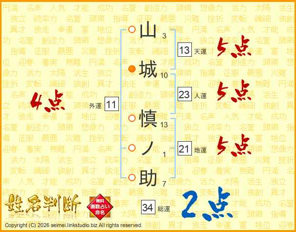 山(3画)城(10画) 慎(13画)ノ(1画)助(7画)