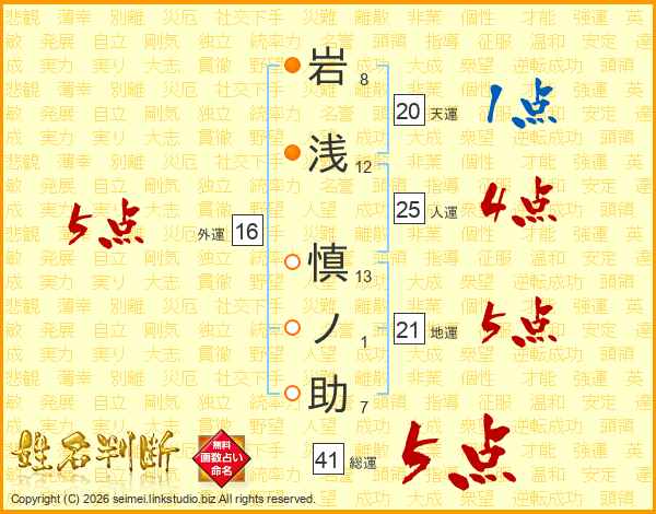 岩浅慎ノ助さんの総運は41画の5点!