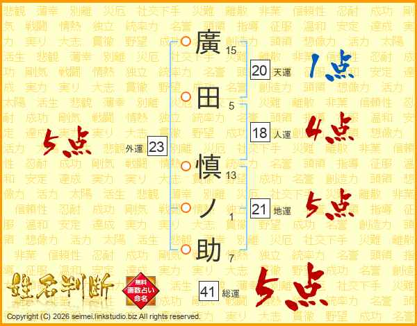 廣田慎ノ助さんの総運は41画の5点!