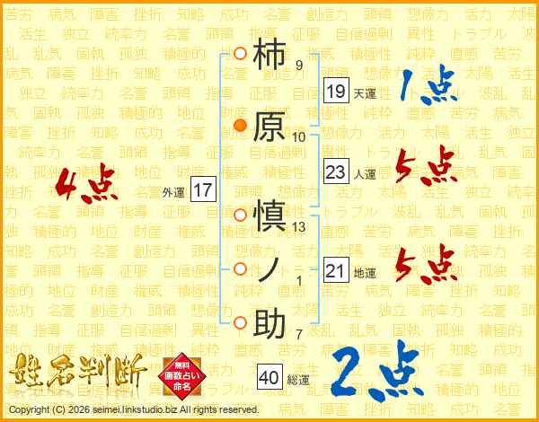 柿原慎ノ助さんの総運は40画の2点!
