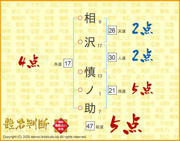 相(9画)沢(17画) 慎(13画)ノ(1画)助(7画)