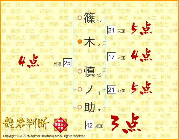 篠(17画)木(4画) 慎(13画)ノ(1画)助(7画)