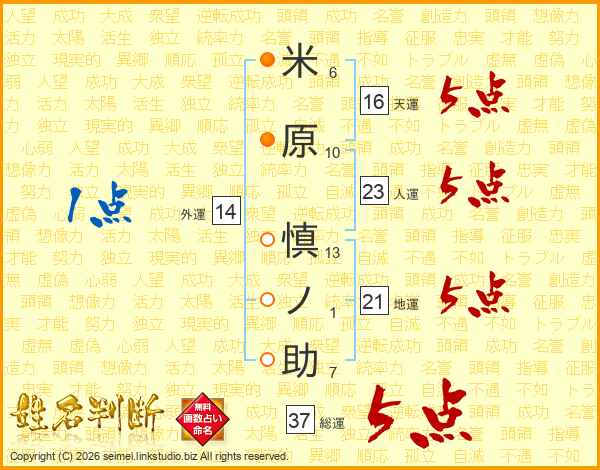 米原慎ノ助さんの総運は37画の5点!