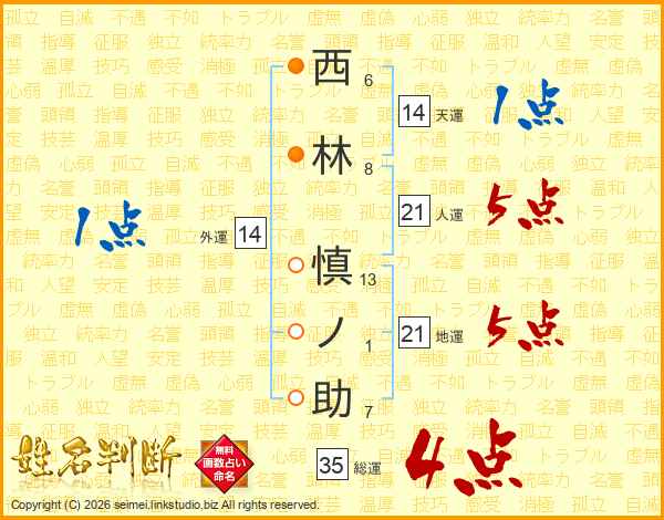 西林慎ノ助さんの総運は35画の4点!