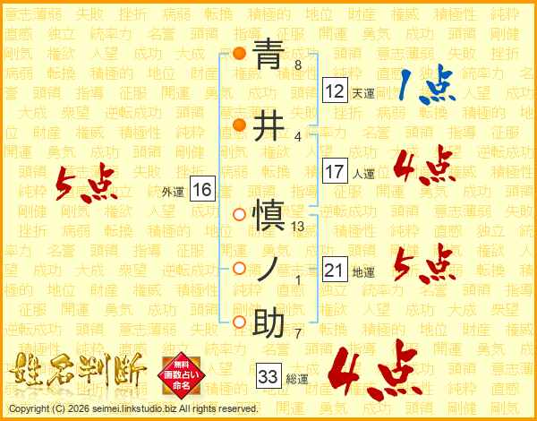 青井慎ノ助さんの総運は33画の4点!