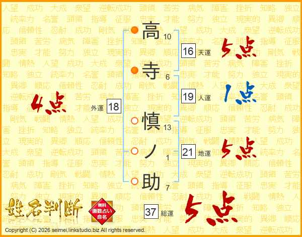 高(10画)寺(6画) 慎(13画)ノ(1画)助(7画)