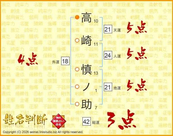 高崎慎ノ助さんの地運は21画の5点!
