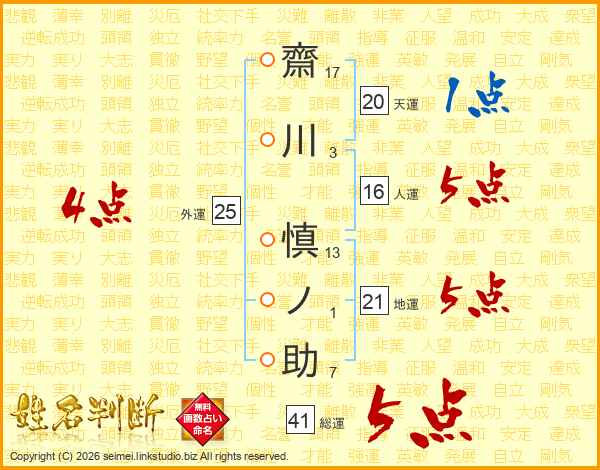 齋川慎ノ助さんの総運は41画の5点!