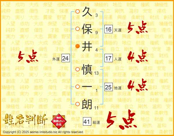 久保井慎一朗さんの地運は25画の4点!