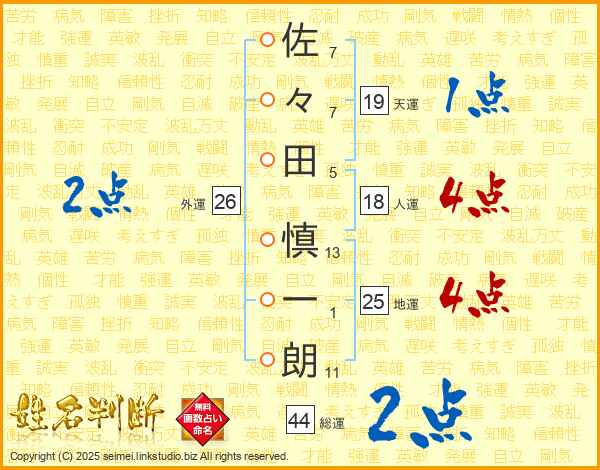 佐々田慎一朗さんの総運は44画の2点!