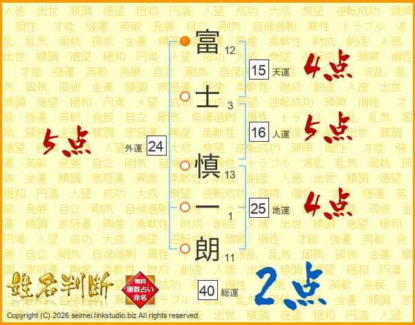 富士慎一朗さんの地運は25画の4点!