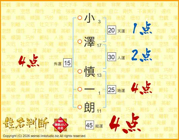 小澤慎一朗さんの総運は45画の4点!