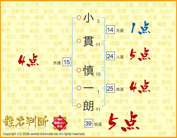 小貫慎一朗さんの総運は39画の5点!