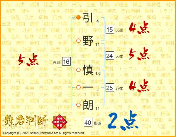 引野慎一朗さんの総運は40画の2点!