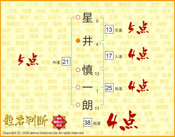 星(9画)井(4画) 慎(13画)一(1画)朗(11画)