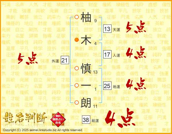 柚木慎一朗さんの総運は38画の4点!