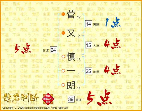 菅又慎一朗さんの総運は39画の5点!
