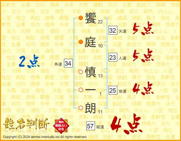 饗庭慎一朗さんの総運は57画の4点!