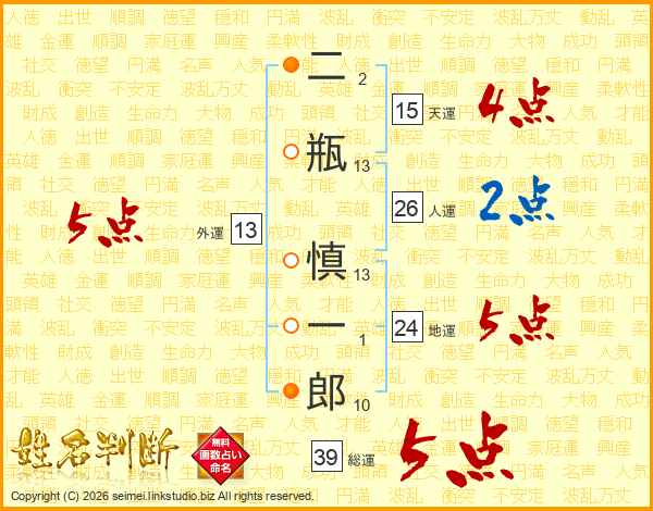 二瓶慎一郎さんの総運は39画の5点!
