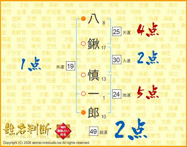 八鍬慎一郎さんの天運は25画の4点!