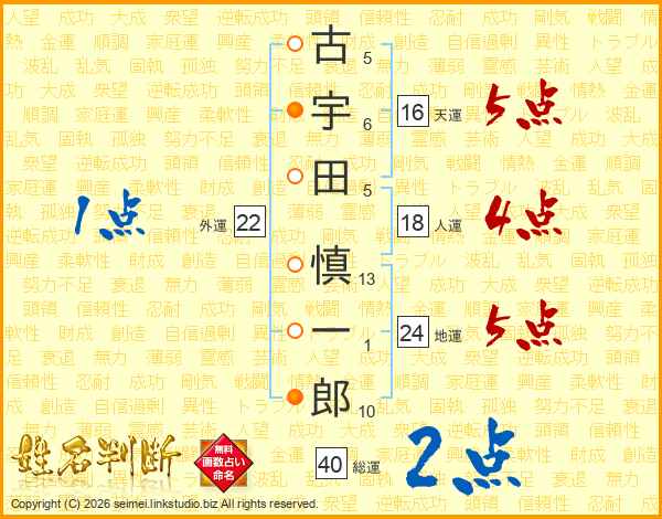 古宇田慎一郎さんの総運は40画の2点!