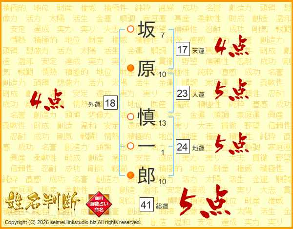 坂原慎一郎さんの総運は41画の5点!
